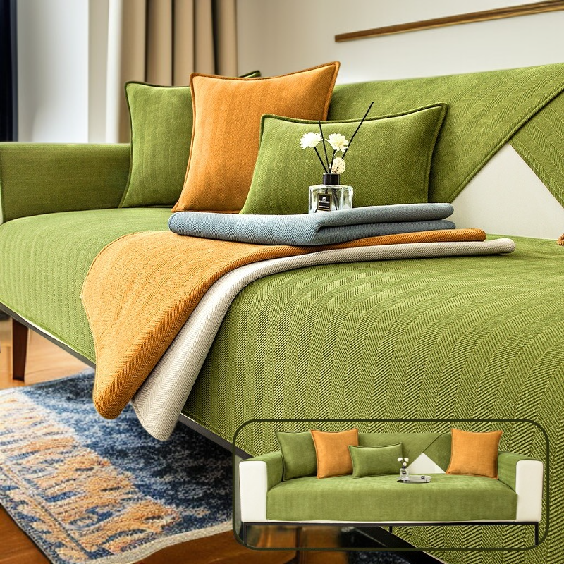 シュニール織のソファカバーは、ピュアカラーで滑り止め付き。ホームユースに最適で、ナチュラルコンフォートを実現し、簡単に装着可能。